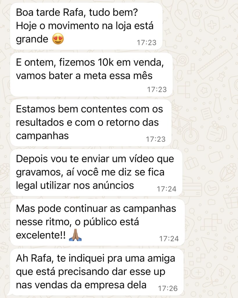 LucasTrustindex verifica se a fonte original da avaliação é Google. Só tenho elogios! A agência faz um trabalho excelente para a nossa clínica. Em pouco tempo, os agendamentos triplicaram, mostrando que a estratégia deles realmente funciona. A Rafaela que cuida dos anúncios é muito comprometida e entrega resultado de verdade. Indico com total confiança. Diretor CyrelaTrustindex verifica se a fonte original da avaliação é Google. Excelente trabalho de tráfego pago. A agência entende muito bem o mercado imobiliário de alto padrão e entrega campanhas estratégicas, com leads qualificados e comunicação alinhada ao nosso público em São Paulo. Recomendo. Kamila SouzaTrustindex verifica se a fonte original da avaliação é Google. A melhor, sou de Brasília tive muitos problemas com agências daqui, hoje sou muito feliz com o trabalho dessa empresa, meu faturamento triplicou Maysa MerliniTrustindex verifica se a fonte original da avaliação é Google. Ótima agência de marketing digital, profissionais muito competentes, em especial a Rafaela que percebe-se o carinho e a simpatia nas reuniões! Recomendo a todos que procuram uma agência de confiança! ts comercioTrustindex verifica se a fonte original da avaliação é Google. Já faz um ano que a agência Booster presta o serviço de tráfego pago para nossa loja, desde quando começamos os anúncios foi um grande crescimento de faturamento. Hoje vemos o serviço de tráfego pago como um investimento necessário. A Booster presta um excelente atendimento, recomendo a todos os empresários que buscam por uma excelente agência de marketing.Avaliação totalizada Google 5.0 de 5, com base em 5 avaliaçõesCertificado: TrustindexO selo verificado do Trustindex é o Símbolo Universal de Confiança. Apenas as melhores empresas podem obter o selo verificado que tem uma pontuação de avaliação acima de 4.5, com base nas avaliações dos clientes nos últimos 12 meses. Leia mais